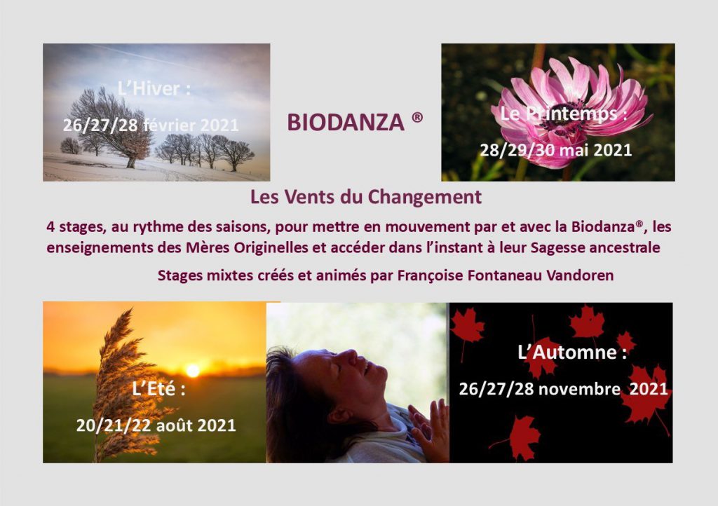 Quatre stages, au rythme des saisons, pour mettre en mouvement, par et avec la Biodanza®, les enseignements des Mères Originelles et accéder dans l’instant à leur Sagesse ancestrale.